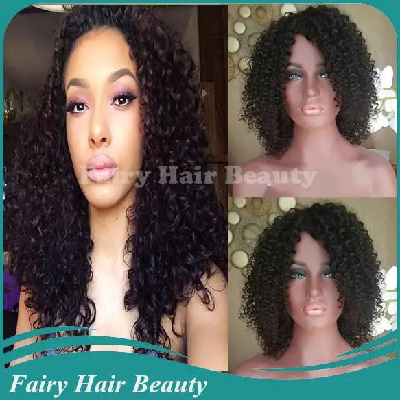 16" #1B tight curly indian remy hair virgin full lace wig