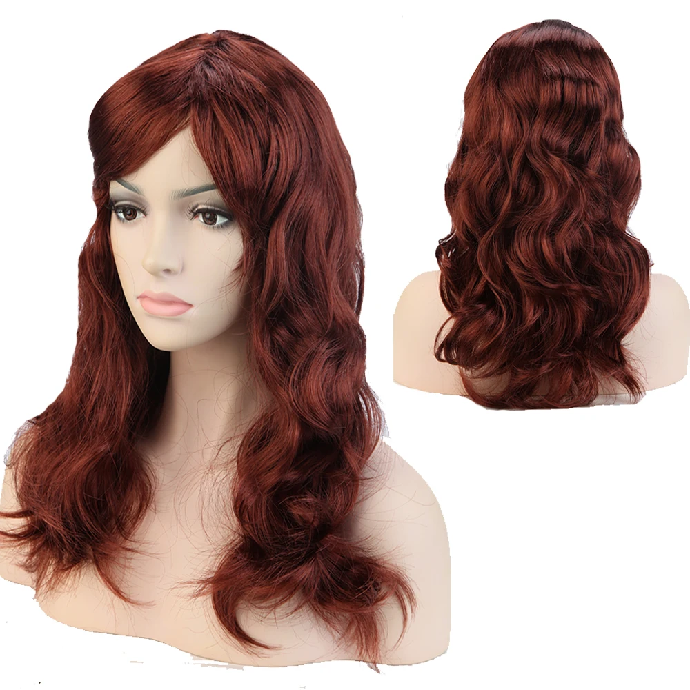 Women 19" Long Fashion Dark Auburn Curly Wavy Cosplay Wig Synthetic Cheap Party Full Hair
