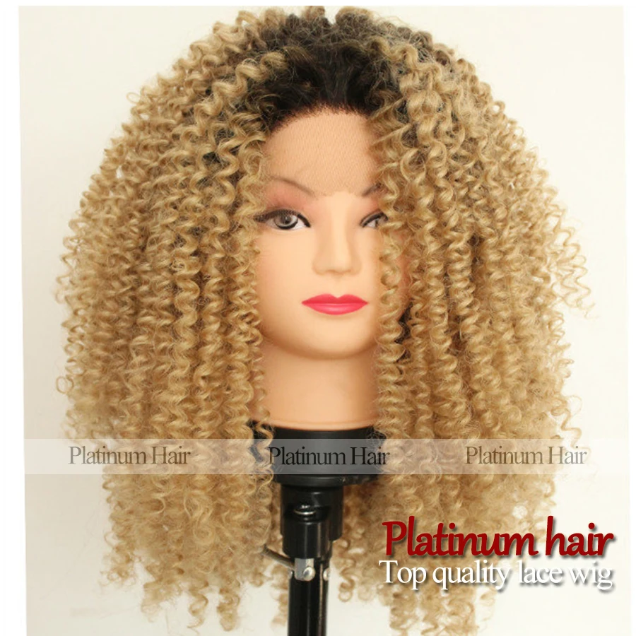 Top Sale Beauty Curly Wig Black Blonde Ombre Color Hair Heat Resistant Afro Kinky Curly Wig